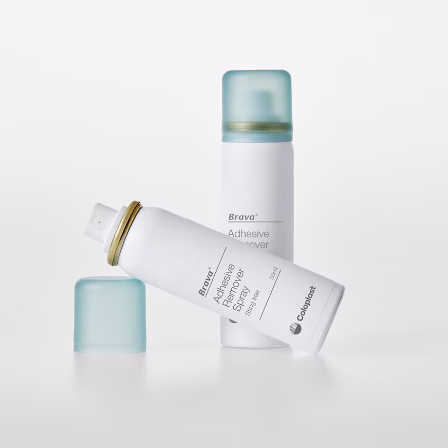 The Brava® Adhesive Remover comes as a spray or a convenient wipe. The gentle spray makes it easy to remove the baseplate, while the wipe gently removes any adhesive residues on the skin. The wipe is practical when outside of your home or travelling due to its size.